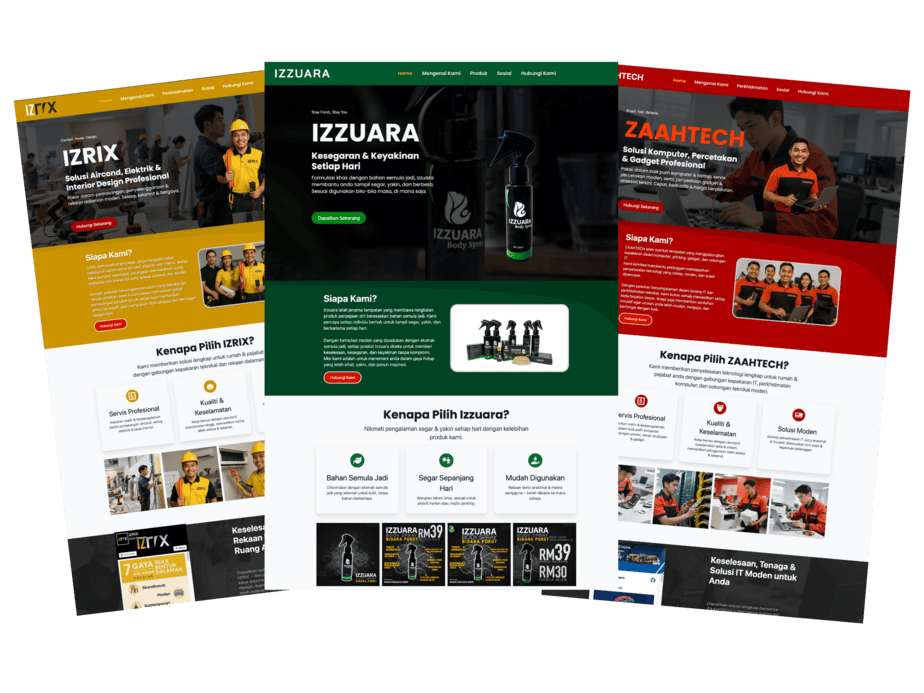 📌 Boleh tukar warna & teks asas sahaja. Rekaan khas/custom design hanya untuk pakej Web Premium.