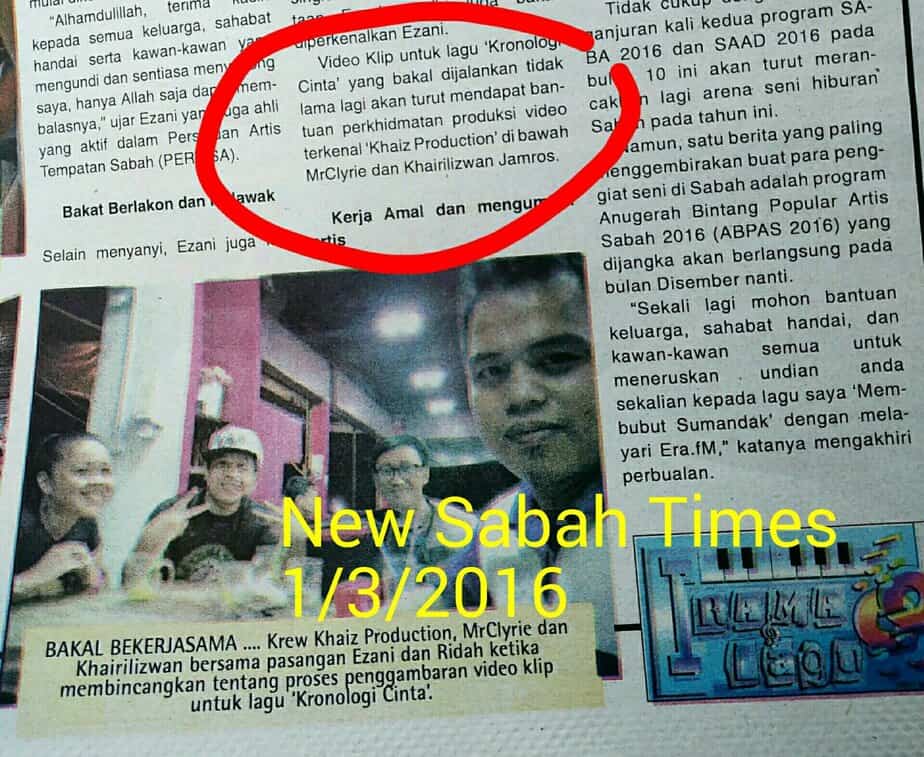 Kami merupakan tim yang berpengalaman dalam pembikinan muzik video di Sabah sejak tahun 2013 lagi.